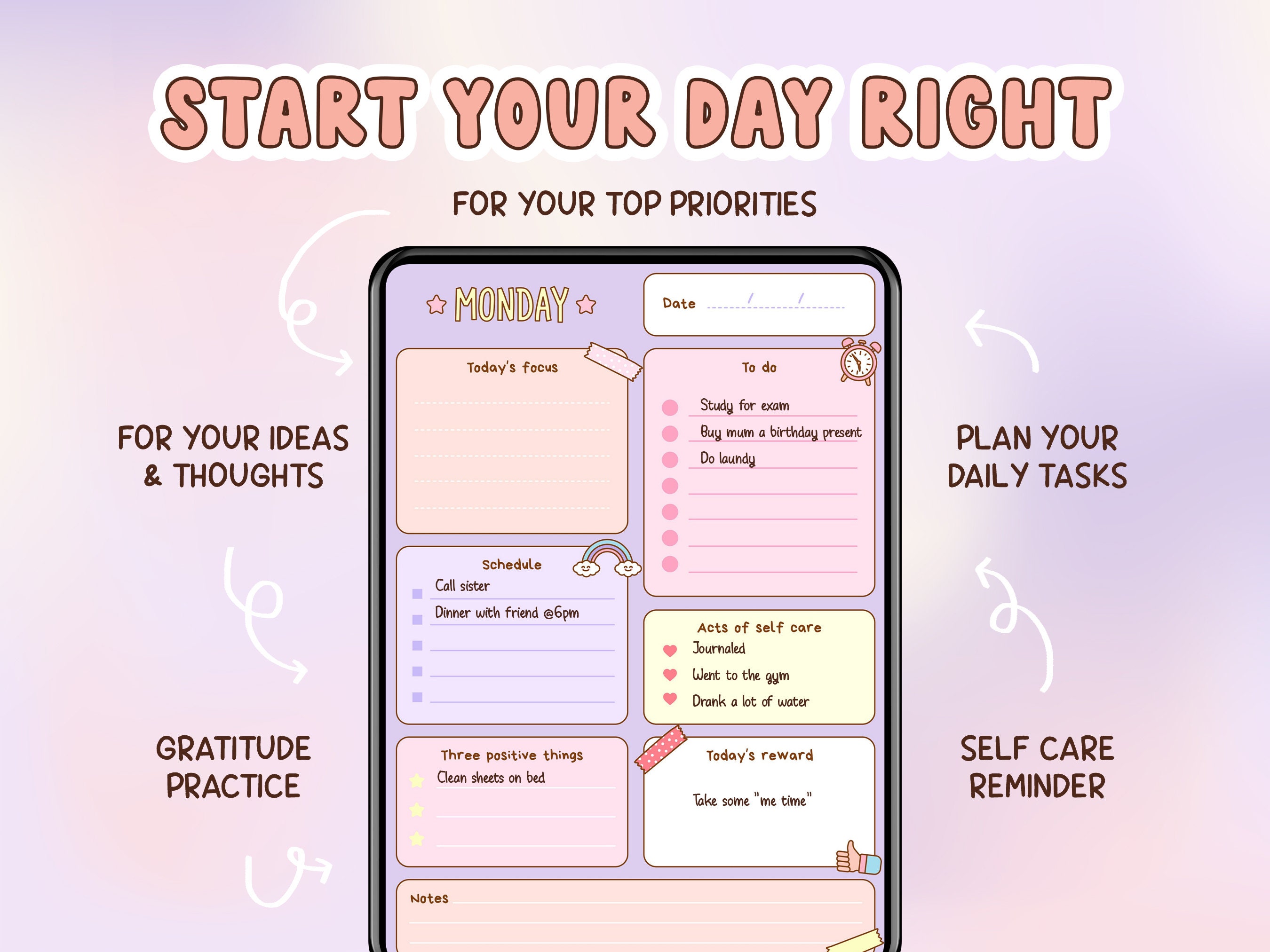 Self Care Planner Daily Planner Printable Wellness Journal Etsy