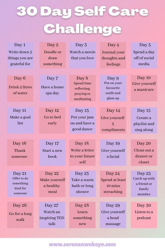 30 Days Of Self Care Etsy